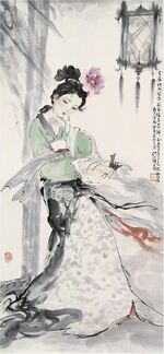 Yang Yuhuan often referred to as Yang Guifei 楊貴妃 was said to have lived during the Tang Dynasty. She was an imperial concubine of Emperor Xuanzong and commonly called Imperial Concubine Yang. She was also known briefly under her Taoïst nun name Taozhen.